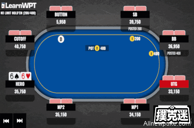 拿着6♠ 6♥,我们很可能对抗大多数对手的范围都有超过38%的胜率。我们对抗由77+、AJs+、KQs、AJo+、KQo组成的范围恰好有超过38%的胜率。
