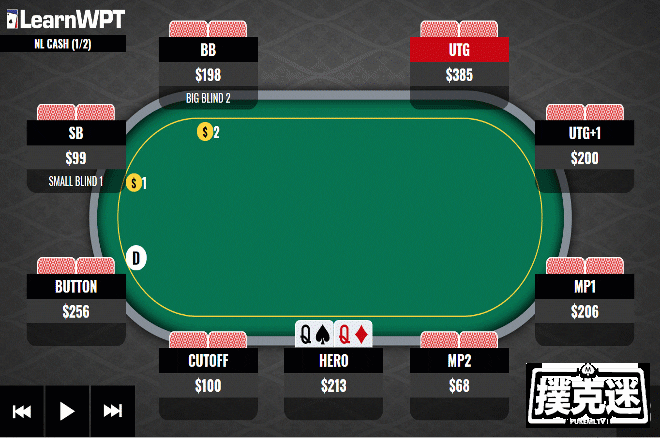 因为我们的对手通常只有相对较少的补牌(out),我们可以通过做一个较小的下注(也许是50美元)赚得最多收益。若对手对我们的下注全压,我们就跟注。