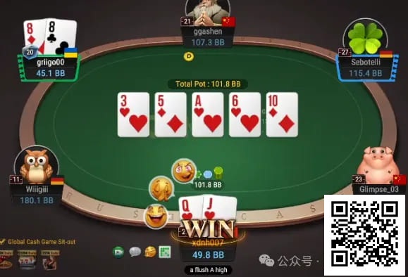 Hero call, Hero摊牌88,Hero赢下101.8BB底池