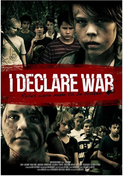 Bang, bang, you're dead. No, really dead. A group of twelve year old kids play war in a forest but the audience views the action through their eyes. They fire real machine guns, hear mortars exploding around them, and dodge bloody shrapnel from grenades. I Declare War is a movie for young and adult audiences alike, featuring twelve to thirteen year old actors in the tradition of Stand By Me. With overtones of Lord of the Flies, I Declare War is a parable for not only events broadcast nightly on newscasts throughout the world, but a chilling depiction of the capacity for youth and man to take charge and to win at all costs.
