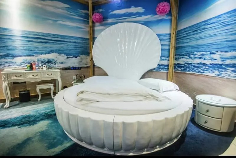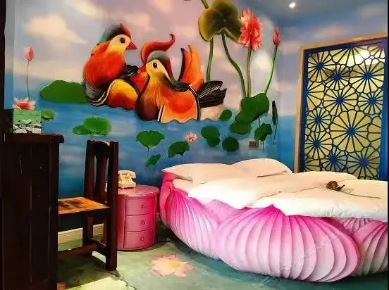 那么,在确立以上红、粉、蓝、绿,情趣酒店基本元素后,请记得,便宜情趣酒店三大杀器:珠帘、纱缦、大圆床。你就能叠加buff出无数的房型创意。