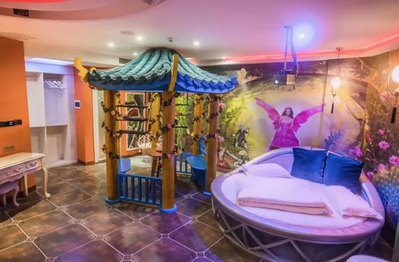 这些年成都涌入大量观光客,酒店需求量大增,为了迎接许多预算有限的年轻观光客,酒店各出奇招,装修下了许多心力,出现了许多情趣酒店。然而在创意无限又奔放外,因装修成本考虑,又多半略带些土味。