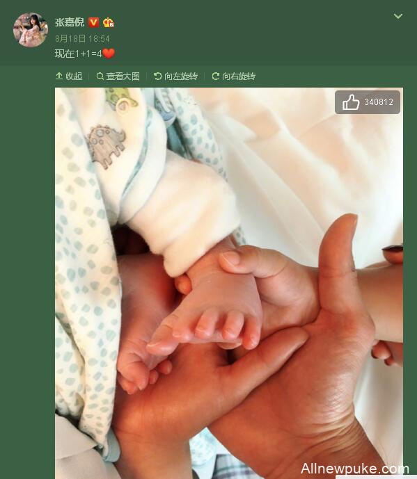 顺嫔娘娘还没有上线,但是戏外的张嘉倪孩子都生了两个了。周六下午张嘉倪就在微博上宣布,现在已经是一家四口了。
