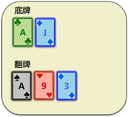 我们现在利用一些组合概率数学来论证这种观点。假设我们翻前加注,被某个简单直接的对手跟注,然后看到翻牌是: