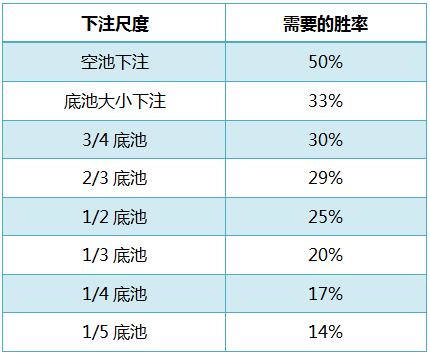 用不着。相反,他应该参考相对于底池大小的典型下注尺度的RE数据。如果他知道跟注底池大小、2/3底池大小、半个底池大小下注各需要多少胜率,他就可以通过找出最接近下注尺度的典型尺度快速估算他需要的胜率。