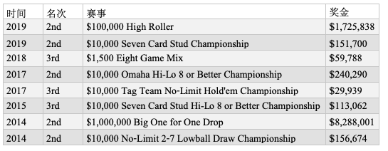 丹牛是决胜桌开场时筹码量最少的选手,但经验丰富且牌技一流的他很快让自己筹码量得到了翻番。丹牛也许还是差点运气,今年他打入了四次WSOP赛事决胜桌,本次是他获得的第二个比赛亚军,再这样下去恐怕圈内就要给他个“千年老二”的绰号了。