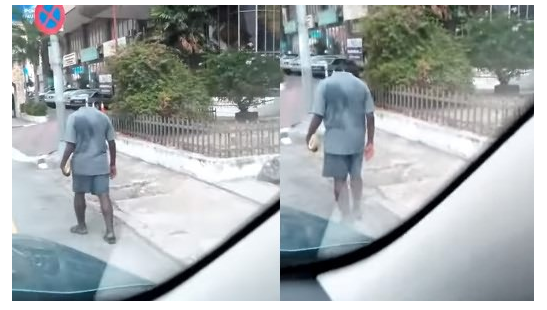 当这位网友开车慢慢靠近这位无头男时,无头男缓慢稳步向前行走时,发现无头男走路有些摇晃,这一行为令人好奇。