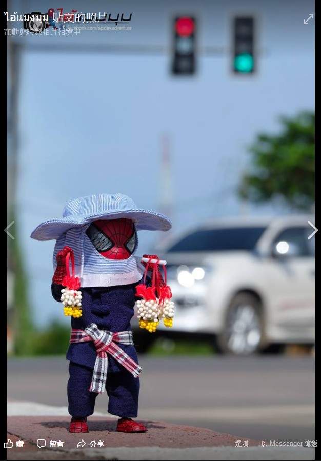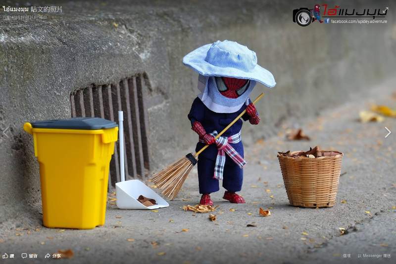 今天真正想分享的内容,其实是他们拍摄由蜘蛛人当主角,穿起衣服戴起斗笠,活灵活现的表现出泰国当地的迷你生活照。