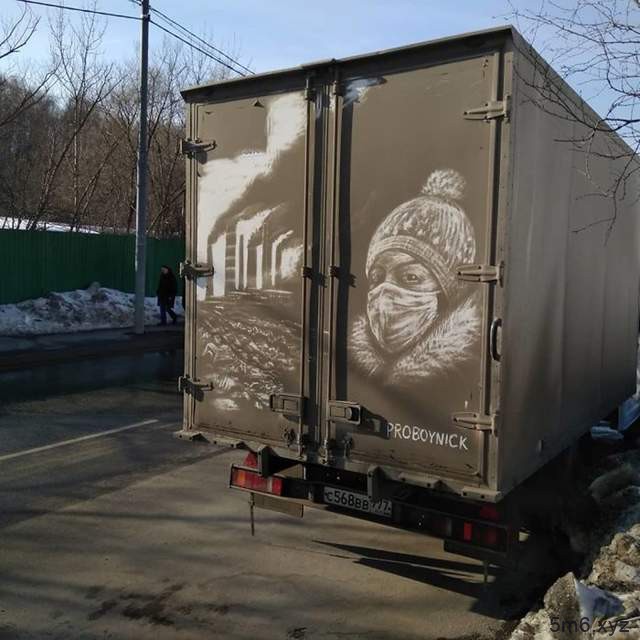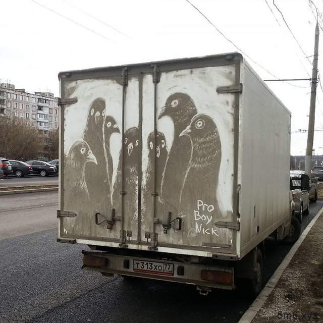 像之前就有位俄罗斯艺术家Nikita Golubev专找这些脏脏的车子来创作,尤其是那种越大台的车子画出来的画更是壮观,看完他的创作后都舍不得洗车呢。