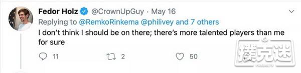 而德国“退休玩家”Fedor Holz则很谦虚的说道,我不认为我应该在这个名单里,我很确定有很多玩家比我更有天赋。