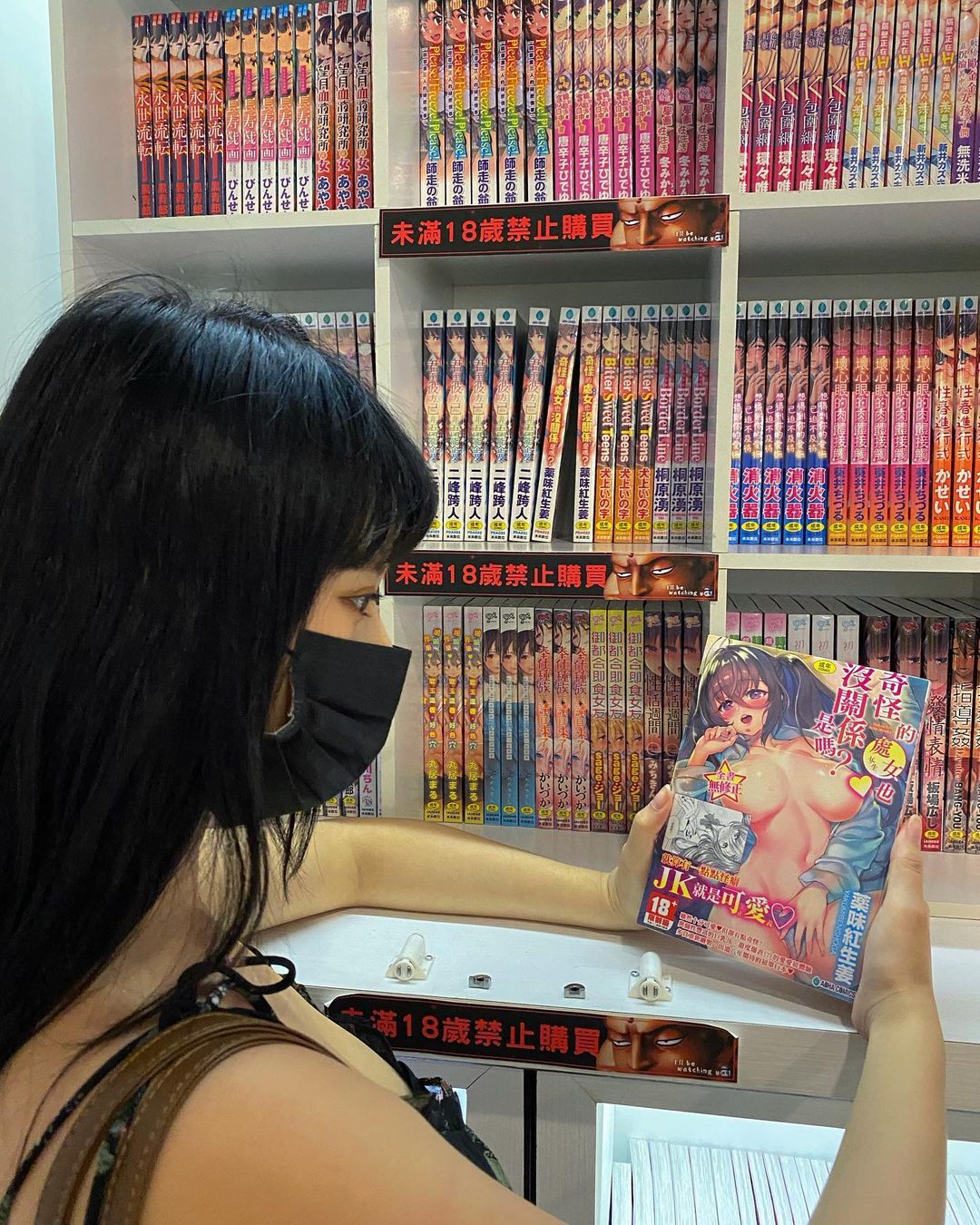 你各位現在還會去逛書店嗎?有沒有曾經「誤闖」過18禁專區呢?裡面有不少打開新世界大門的好東西呢!就有一位黑髮的巨乳細腰正妹,在逛台北三創的時候不小心發現了色色專區,還問網友「請問這本書名是什麼意思?」超衝擊性的畫面果然引起不少網友關注,上百人評論留言,還有1.4萬人點讚呢。