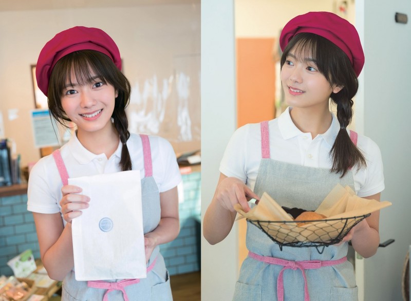 在最新寫真中化身麵包店店員的田村保乃,是偶像團體櫻坂46的成員,全身上下都散發甜甜女友力的她,不只擁有晶瑩透亮白皙美肌,那雙水汪無辜大眼更是透明感十足,配上胸前渾圓飽滿棉花糖雪乳,讓人即使只是隔著螢幕欣賞她的美照,依舊足以讓人為之心動。