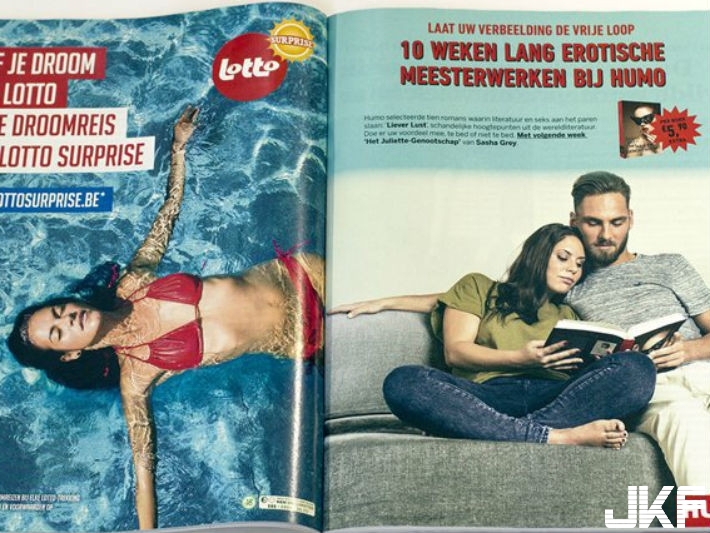 廣告中的性暗示無所不在,許多行銷研究認為,性慾有助於刺激人的消費慾望,或讓人做出非理性的開支。比利時的諷刺雜誌《Humo》曾進行過一系列廣告企劃,讓雜誌左右兩頁的圖畫,或者不相關的兩張照片,產生微妙的「性連結」。以下這些圖片,你能看出哪裡有問題嗎?