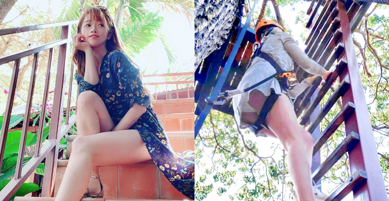 果然聞到春天要來的味道啦!這位可愛小甜心【曲羿Chuyi】近日和媽媽到泰國清邁遊玩,體驗了特別又刺激的叢林飛索,穿著白色小短裙的她爬著爬著木製梯子,曲媽真是超夠意思的拍下綺麗風景,她還開心的說:「#媽媽視角 (是褲子)很刺激有點好玩の叢林飛索(內有曲妹魔性笑聲?請降低音量)」,管她裙子還褲子,滿滿的春光讓宅男們心情也飛起來!
