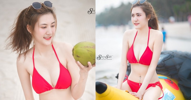 雖然台灣的氣候已經入秋並且開始有點涼意,但在泰國這種四季都是夏天的地方,比基尼永遠不缺席!!今天這位擁有白皙大奶的漂亮妹子就很上道,知道用紅紅火火的比基尼來溫暖我們的心~
