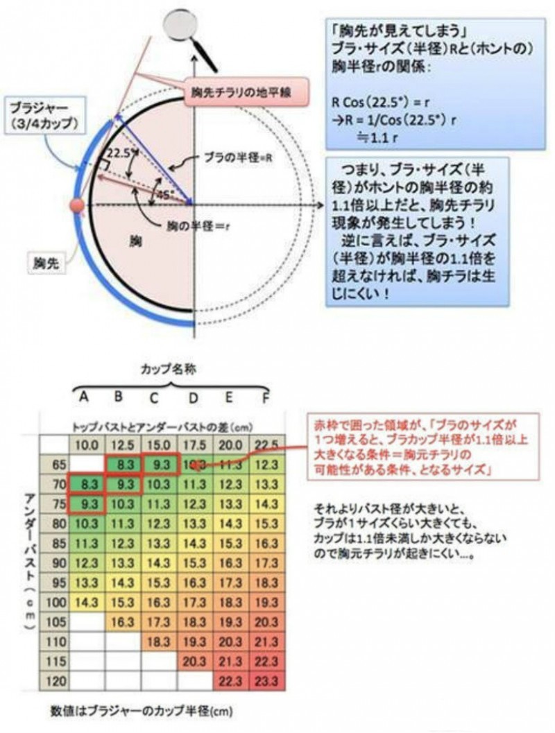 其实,除了用函数来表达乳房的形状,先前也曾有一位叫平林纯的日本学者,计算胸部最容易走光…啊不是,是防止胸部走光的数学方程式。写到这里,连我都觉得奇怪,为什么都是日本人在研究这种事情呢?