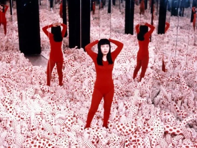 草间弥生在青少年时期便出现幻听和幻视,经诊断是精神分裂症,她感觉到花鸟鱼虫在跟她说话,她的世界也被数不完的圆点包围。